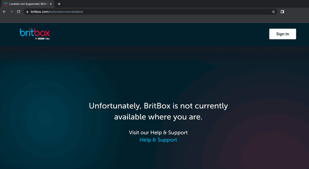 BritBox herkent je locatie nog steeds als buiten het VK.