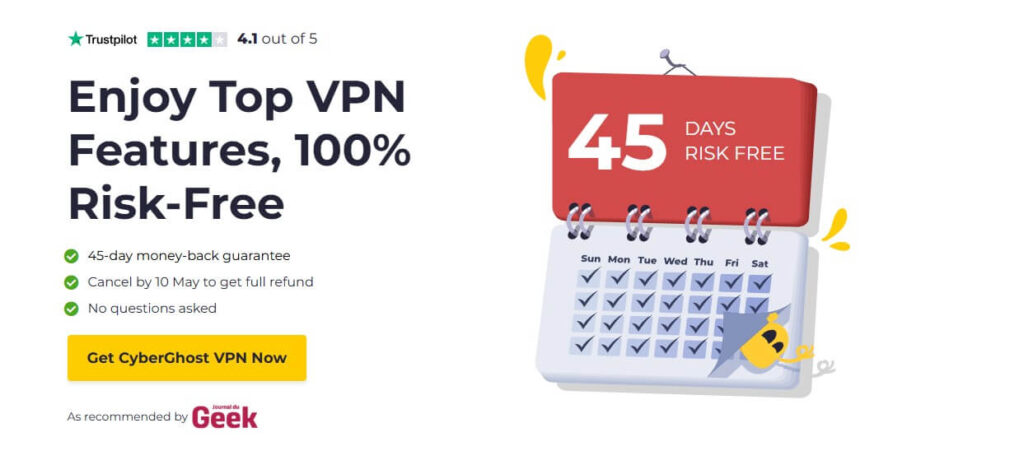 Wij hebben de 45-dagen garantie getest en bevestigen de betrouwbaarheid ervan. U kunt eenvoudig een terugbetaling aanvragen via de 24/7 Live Chat of e-mailondersteuning. Er waren geen ingewikkelde procedures; de terugbetaling werd snel en zonder druk verwerkt. Dit geeft u ruim de tijd om de review CyberGhost VPN zelf uit te voeren, zonder enig financieel risico.