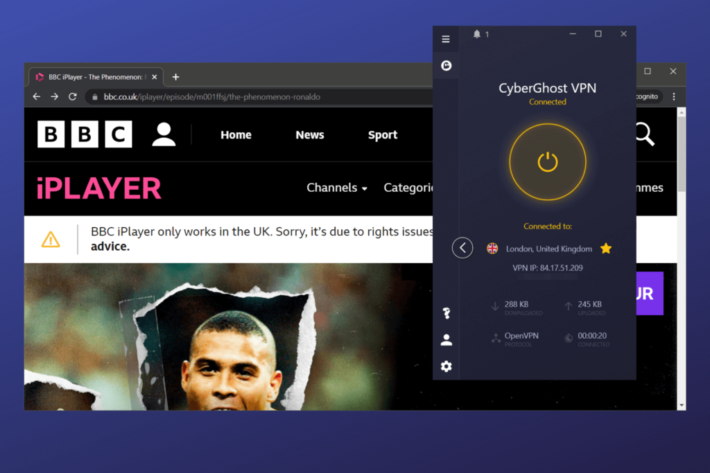 - Andere Diensten: Ook bij andere grote Amerikaanse diensten, zoals Disney+, BBC iPlayer, Channel 4 ,Max (voorheen HBO Max) en Hulu, toonde CyberGhost consistente, snelle prestaties. De verbindingen zijn in staat om content in UHD-kwaliteit te leveren zonder merkbare buffering of vertraging, vooral wanneer u het snelle WireGuard-protocol gebruikt.