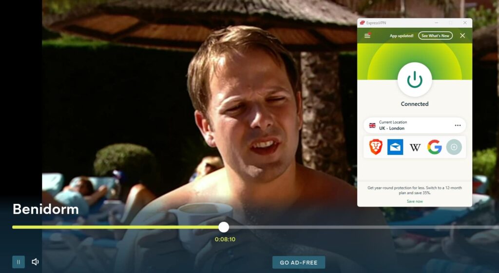 Installeer VPN en verbind met UK server — download ExpressVPN of NordVPN en verbind met een Britse server.