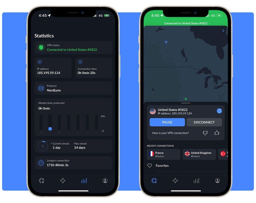 NordVPN in één oogopslag: razendsnelle verbindingen via NordLynx, uitstekende beveiliging, sterke streamingprestaties en betrouwbare privacy.