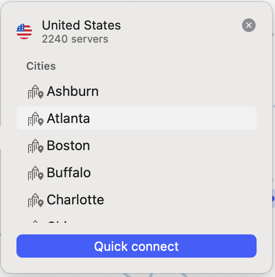 Pro Tip: Als je verbindt met de VS, probeer dan een specifieke stad. Als je servers met nummers ziet (bijv. United States #8450), probeer dan een server met een hoger, nieuwer nummer. Deze hebben minder kans om al op een zwarte lijst te staan.