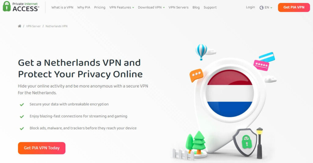 Deze sectie is specifiek voor jou als je PIA vanuit Nederland gebruikt, of vanuit het buitenland toegang wilt tot Nederlandse diensten.