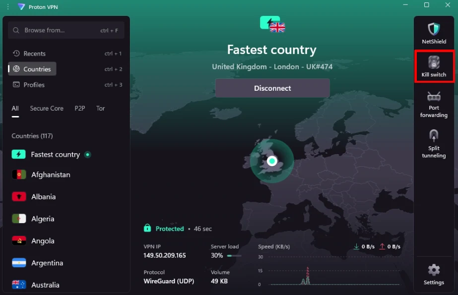 - Probeer een andere Plus-server in hetzelfde land (ProtonVPN heeft 553+ UK servers)